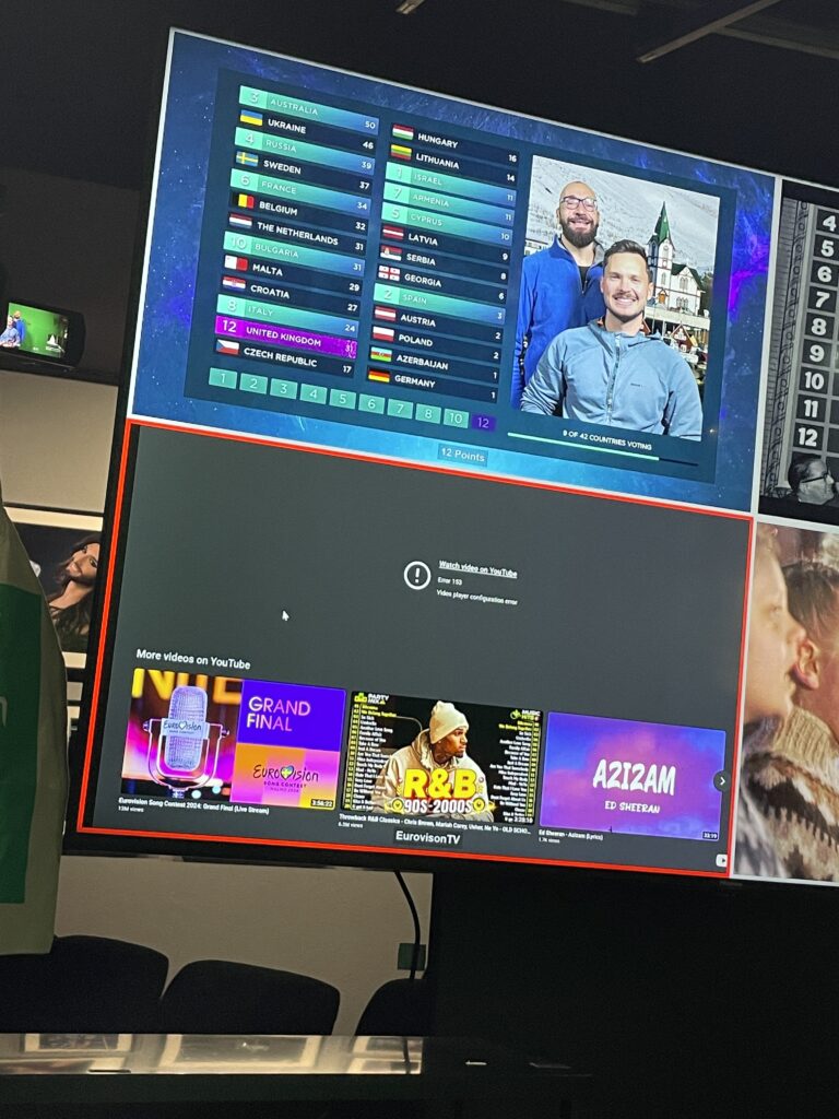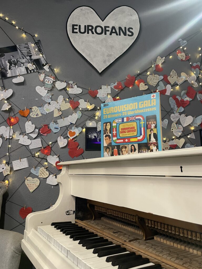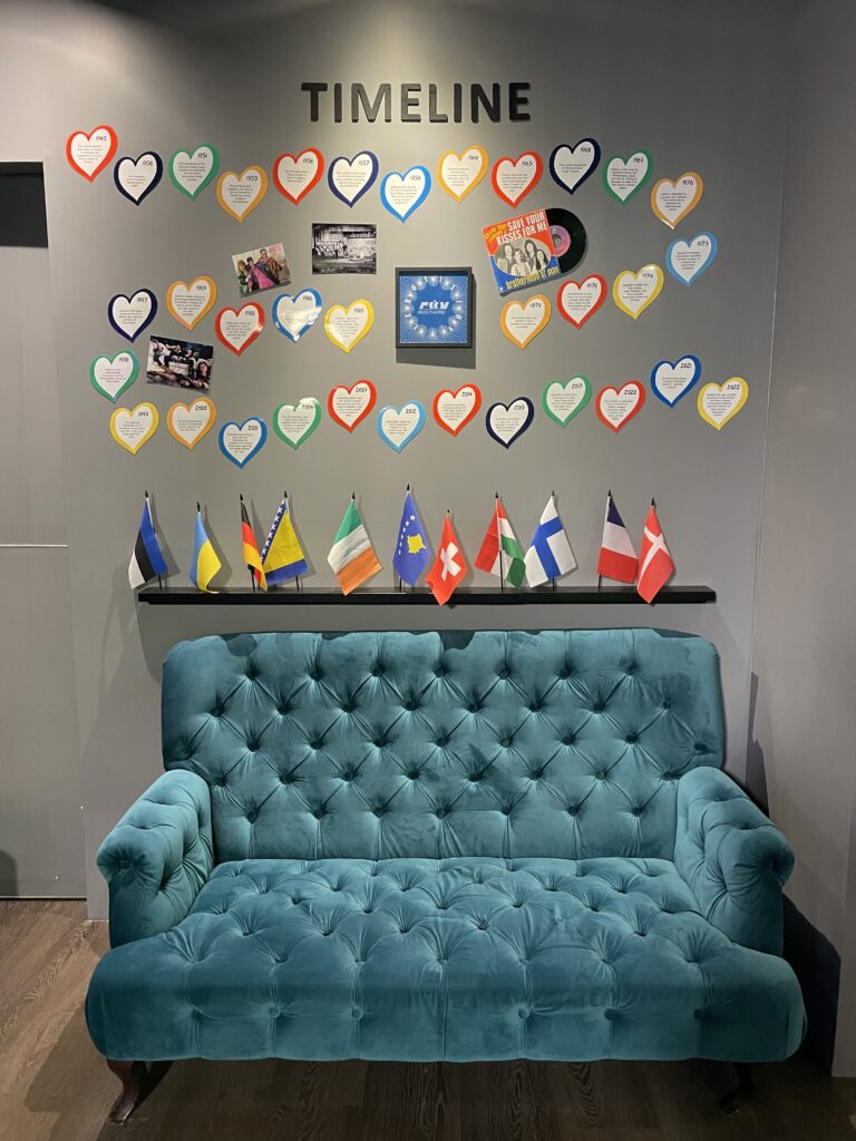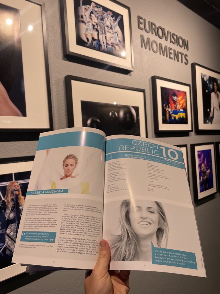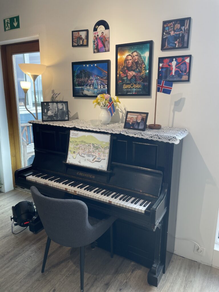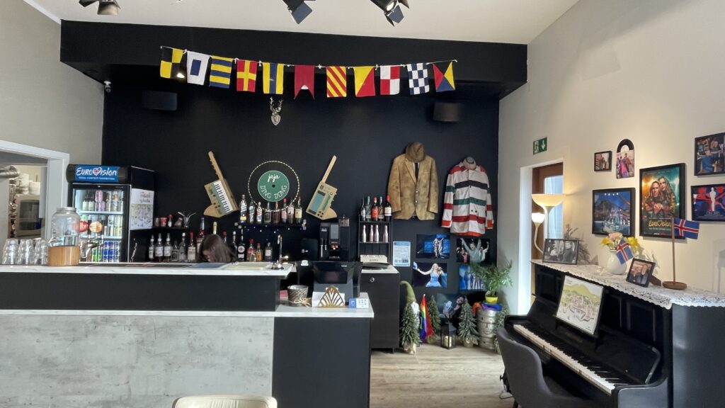 Rybářské městečko Húsavík se dostalo do centra pozornosti díky filmu s Willem Ferrellem a Rachel McAdamsovou „Eurovision Song Contest: The Story of Fire Saga“, kde se velká část filmu odehrává. Od té doby ještě více láká turisty z celého světa včetně eurovizních fanoušků.Dominantou městečka je místní dřevěný luteránský kostel, kde se natáčely jedny z nejznámějších scén z filmu.Přístaviště Húsavíku je lemováno domky s typickou islandskou architekturou, kde se mimo jiné nachází filmová hospoda, kde místní obyvatelé fandili domácí skupině Fire Saga při jejich eurovizních vystoupeních.Po cestě do eurovizního muzea jsme objevili autobusovou zastávku, kde v závěru filmu zastavuje autobus s oběma hlavními představiteli, kteří přijíždí do Húsavíku po svém vystoupení na ESC a jsou vítány davy místních obyvatel.Nad přístavem je již z dálky viditelná budova muzea Eurovize. Štít muzejní budovy zdobí ikonické eurovizní srdce s islandskou vlajkou.Hned vedle vstupu do eurovizního muzea se nachází filmové domečky elfíků, které objevily ve scéně, kde je Sigrit žádá, aby jim pomohli dostat se na Eurovizi.Toto už je vstupní hala muzea s kavárnou. Muzeum bylo otevřeno starostou Húsavíku v červenci 2020 a provozuje ho místní Exploration Museum s povolením Evropské vysílací unie a Netflixu. Vystavuje kostýmy a rekvizity z písňové soutěže ESC, stejně jako kostýmy a rekvizity z filmu.V rohu kavárny je situováno piano se zarámovanými eurovizními fotografiemi, které přibližují nejen film, který Húsavík proslavil, ale i jedinečné vystoupení švédské zpěvačky Molly Sandén, která během vyhlašování Oscarů 2021 živě s dětským sborem zazpívala svůj hit Húsavík (My Hometown) přímo z přístavu.Muzeum se skládá ze tří hlavních výstavních prostor. První je věnován Islandu a jeho cestě ESC. Druhá výstava vypráví příběh soutěže Eurovision Song Contest po více než sedm desetiletí. Třetí výstavní prostor představuje rekvizity a kostýmy z filmu ESC: Fire Saga od Netflixu.První část výstavních prostot vypráví příběh Islandu v soutěži Eurovision Song Contest a představuje kostýmy a rekvizity několika účastníků této země v průběhu let.Přehled dosavadních islandských účastníků ESC a dosažených výsledků od první účasti Islandu až po Liverpool 2023, kdy uprostřed panelu běžela krátká videa eurovizních vystoupení Islandu včetně prvního islandského příspěvku Gleðibankinn z roku 1986.Detailní pohled na fotografie islandských reprezentantů ESC, ale i třeba letenku s aerolinkou SAS na ESC 1986.Jeden z nejvýraznějších islandských počinů poslední eurovizní dekády, 2020 a 2021, Daði og Gagnamagnið.Trofej pro vítěze islandského národního kola Stefán Hilmarssona a Eyjólfur Kristjánsson z roku 1991 – písňové soutěže Söngvakeppnin. Její vítěz zpravidla reprezentuje Island v ESC, pokud se tedy nekonal interní výběr, jak tomu bylo v letech 1995 až 1999, a v roce 2004, 2005 a 2021.Druhá část výstavních prostor je věnována více než sedmdesátileté historii Eurovision Song Contest.Klíčové eurovizní momenty nejznámějších vítězů ESC přibližuje návštěvníkům tento panel.K nahlédnutí byly i tištěné oficiální programy různých ročníků ESC, my nahlédli do programu ESC 2016 ve Stockholmu, kde ve finále na 25. místě skončila naše Gabriela Gunčíková.V improvizovaném studiu si mohl každý účastník vyzkoušet roli vyhlašovatele výsledků národní poroty.My jsme samozřejmě nemohli jinak, než našich 12 bodů udělit Islandu!Eurofans zóna nabídla možnost zahrát si na klavír a podívat se na několik LP z historických eurovizních ročníků.Nechyběly ani tematické eurovizní kostýmy, z nichž některé bylo možné si i vyzkoušet.Improvizované eurovizní pódium nabízí možnost vyzkoušet si moderaci či karaoke eurovizních songů. V době naší návštěvy „okupovaly“ pódium turistky z USA.Třetí výstavní prostor představuje rekvizity a kostýmy z filmu Eurovision Song Contest: Fire Saga.Návštěvníci mají jedinečnou možnost nahlédnout pod pokličku natáčení tohoto filmu, který se z velké části odehrává právě zde, v Húsavíku, kde se zrodila „světoznámá“ FIRE SAGA.Nechybí zde ani klávesy z filmu, na které hrál jeden z hlavních představitelů filmu Lars Ericksson (Will Ferrell), na kterém je umístěný deníček, do kterého si filmová Sigrit Ericksdottirová (v podání Rachel McAdams) zaznamenává text své nové písně na hotelovém pokoji, která pak má premiéru během živého eurovizního finále.Kostýmy pro oba hlavní představitele, pěvecké duo z Husaviku, Larse Erickssona a Sigrit Ericksdottirovou, pro píseň Volcano Man.Na samotném konci výstavních prostor je prezentován příběh kampaně města Húsavík za získání Oscara za rok 2021 za píseň, která se objevila ve filmu a byla pojmenována po městě Húsavík. Nakonec zůstalo pouze u nominace. Tato nádherná balada v podání Molly Sandén, si alespoň podle nás určitě Oscara zasloužila! Ale i nominace na Oscara, ale i na Grammy (za nejlepší filmovou hudbu) je úspěchem.Příjemné posezení po návštěvě muzea ve stylové kavárně jaja Ding Dong s možností dát si eurovizní drink. My jsem nakonec, díky nutnosti usednout za volant, volili eurovizní kafe, neboť naší další „eurovizní“ zastávkou byly krásné přírodní scenérie Islandu, kde se točily filmové záběry pro píseň Volcano Man.Ale nabídka míchaných alkoholických nápojů byla opravdu signifikantní.Cestou z muzea jsme šli po silnici, po které běžel filmový Larse Ericksson.Plní zážitků z Húsavíku jsme se vydali na jih Islandu, do míst, kde se točily záběry pro úvodní fi